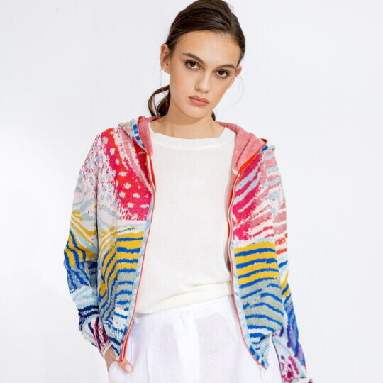Veelkleurig vest met kap in viscose, katoen en linnen